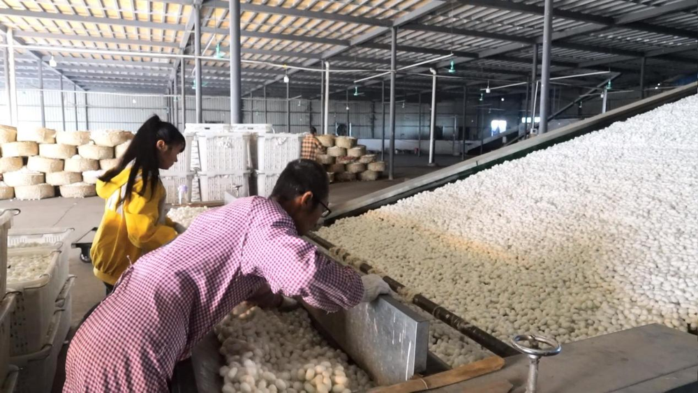蠶繭收購(gòu)點(diǎn)熱鬧非凡。(2022年11月14日攝)
