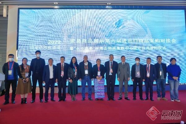 11月21日,2022年泛亞鐵路新通道-貿(mào)易商品展示、第六屆進(jìn)出口商品采購對接會暨“永不落幕”南博會物流集散中心成立儀式在昆明滇池國際會展中心舉行。