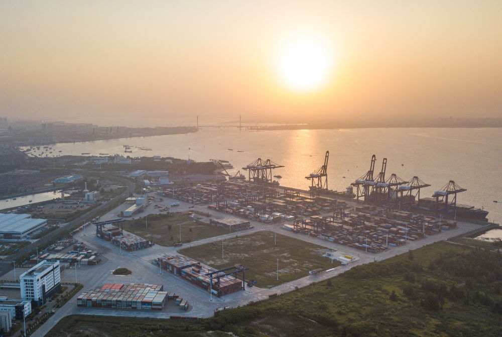 這是2022年9月25日在海南洋浦經(jīng)濟(jì)開(kāi)發(fā)區(qū)拍攝的洋浦國(guó)際集裝箱碼頭(無(wú)人機(jī)照片)。新華社記者 蒲曉旭 攝
