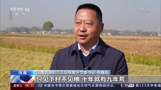 河南省濮陽市范縣楊集鄉(xiāng)黨委書記 杜曙光:當年群眾曾經說過,春季白茫茫,夏秋水汪汪,只見下籽不見糧,十年就有九年荒。
