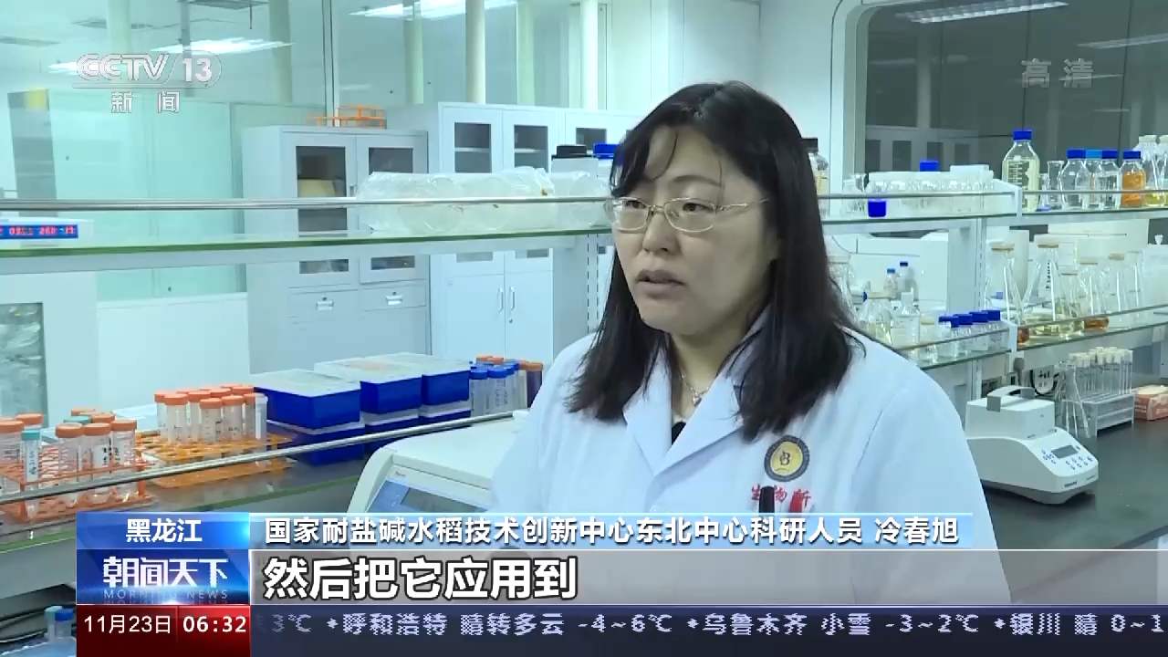 國家耐鹽堿水稻技術創(chuàng)新中心東北中心科研人員 冷春旭:我們做實驗的意義就是要挖掘更多的耐堿的基因,然后把它應用到適合東北的蘇打鹽堿地的土地上。