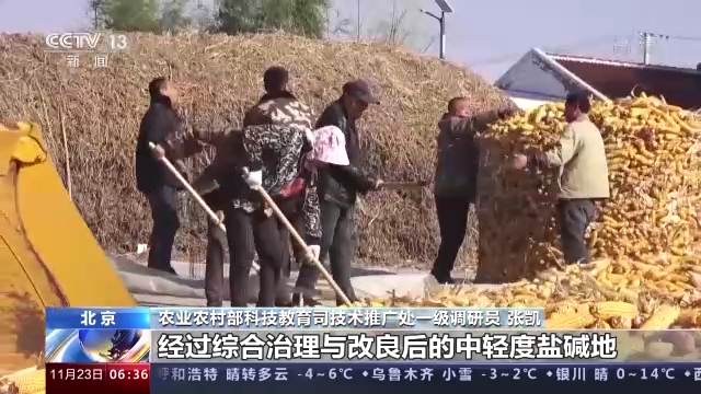 農業(yè)農村部科技教育司技術推廣處一級調研員 張凱:從今年秋收情況來看,經過綜合治理和改良后的中輕度鹽堿地,平均單產水平能夠達到正常地塊的80%到90%。