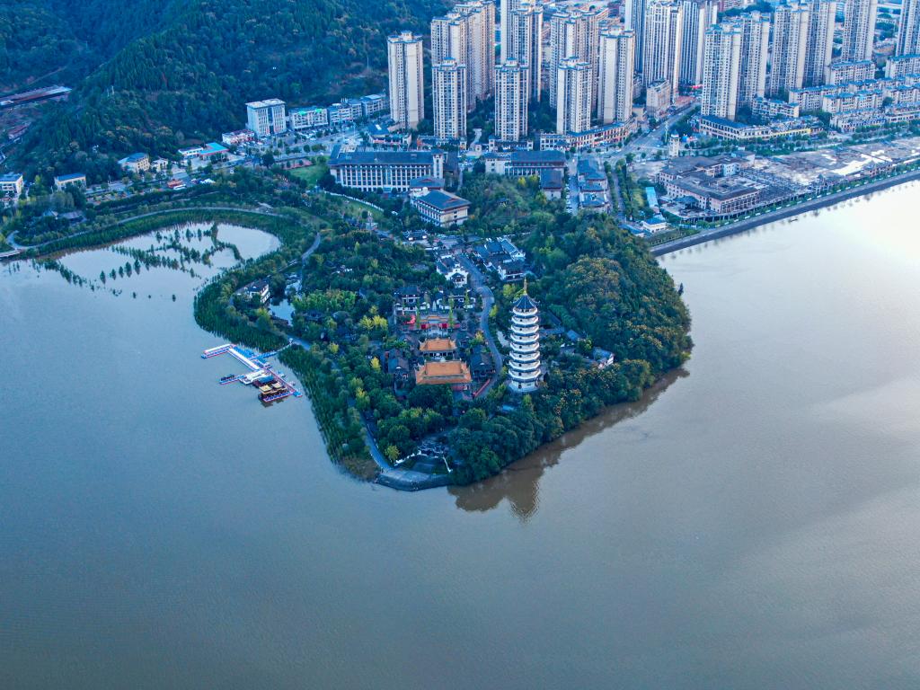 漢豐湖景色與周邊城市建筑。新華社記者劉潺 攝
