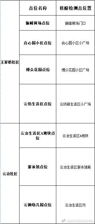 西翥街道核酸檢測采樣點(diǎn)位