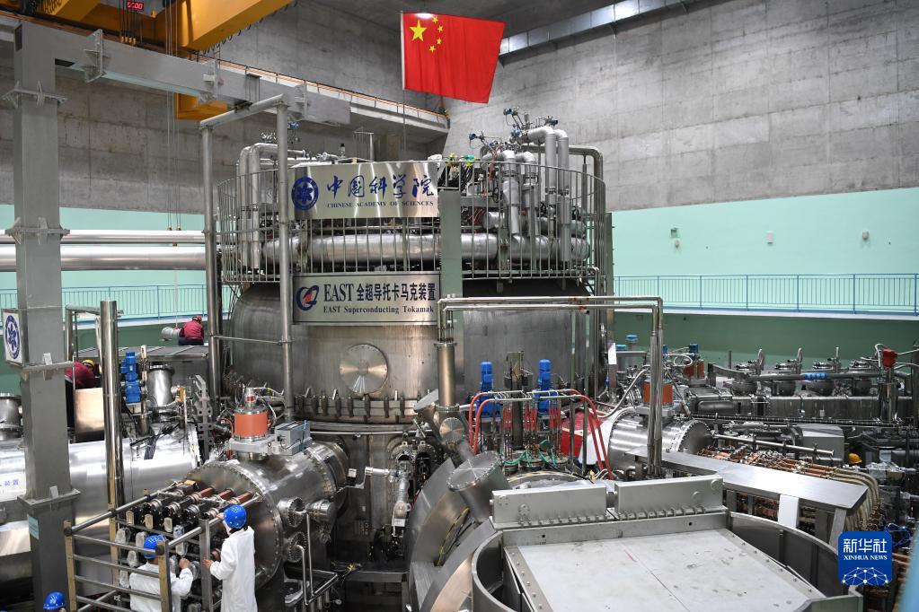 在中科院合肥物質(zhì)科學(xué)研究院,工作人員對(duì)有“人造太陽”之稱的全超導(dǎo)托卡馬克核聚變實(shí)驗(yàn)裝置(EAST)進(jìn)行升級(jí)改造(2021年4月13日攝)。新華社記者 劉軍喜 攝