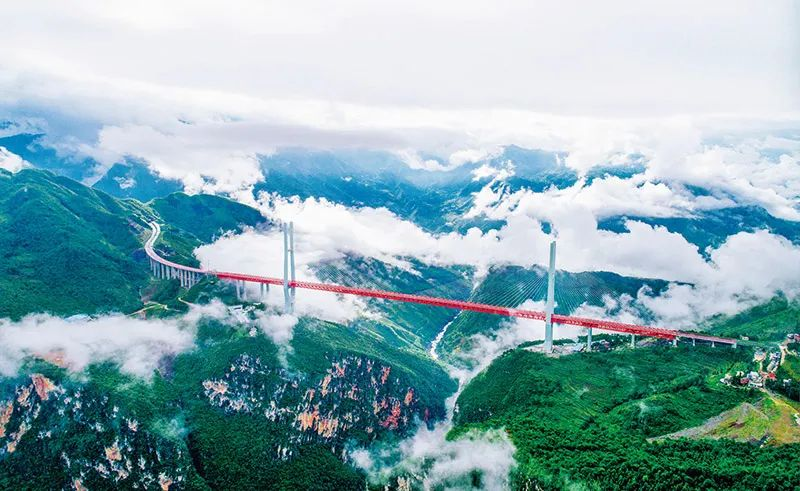 新時代十年的偉大變革具有里程碑意義。十年來,我國建成世界最大的高速鐵路網(wǎng)、高速公路網(wǎng),機(jī)場港口、水利、能源、信息等基礎(chǔ)設(shè)施建設(shè)取得重大成就。圖為2016年底開通的世界第一高橋貴州北盤江大橋?!∪嗣褚曈X 龔小勇/攝