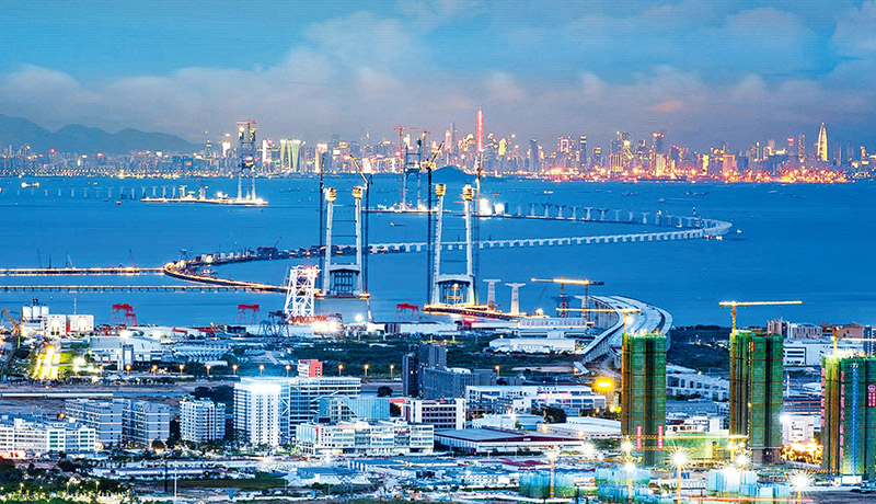 曾經(jīng)被伶仃洋隔斷的珠江口兩岸城市群,正被一條條交通大動脈連通?;浉郯拇鬄硡^(qū)高質(zhì)量發(fā)展,充分彰顯習(xí)近平新時代中國特色社會主義思想的真理之光。圖為正在建設(shè)的深中通道(資料照片)?!⌒氯A社發(fā) 黃春華/攝