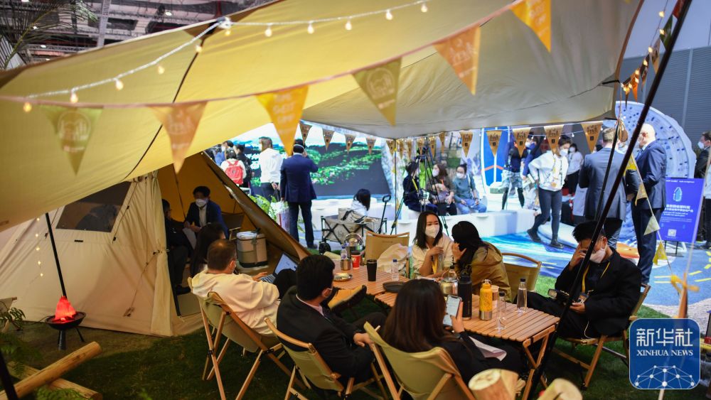 11月7日,觀眾在第五屆進(jìn)博會(huì)上體驗(yàn)露營(yíng)設(shè)備。新華社記者 戴天放 攝
