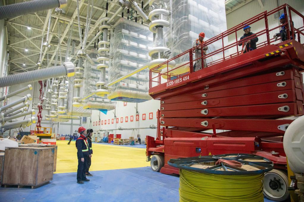電力工人在布拖換流站的閥廳內(nèi)作業(yè)。新華社發(fā)