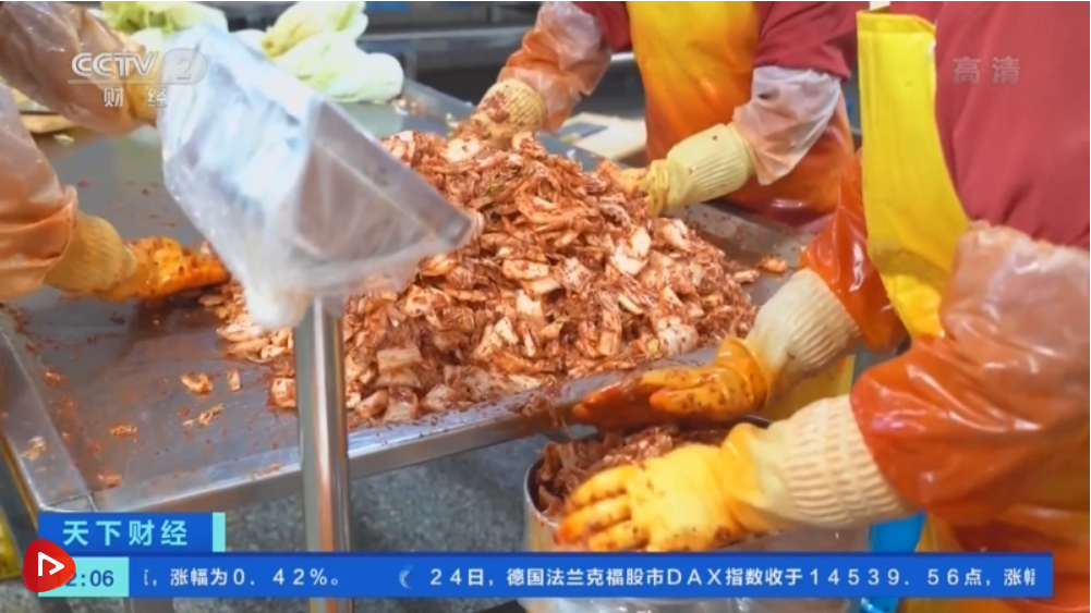 山東青島市農(nóng)業(yè)農(nóng)村局工作人員 宋輝:之所以我們青島的泡菜出口韓國較往年有所增長,最主要的原因有兩點,一是今年以來受氣候影響,韓國大白菜減產(chǎn),導(dǎo)致制作成本增加,泡菜是韓國的標(biāo)志性家常菜,各家各戶有制作泡菜的傳統(tǒng),與其自己制作,不如購買現(xiàn)成的劃算;再加上近期當(dāng)?shù)氐娘埖昊謴?fù)經(jīng)營,讓泡菜需求量進(jìn)一步上升,這也是一個方面。