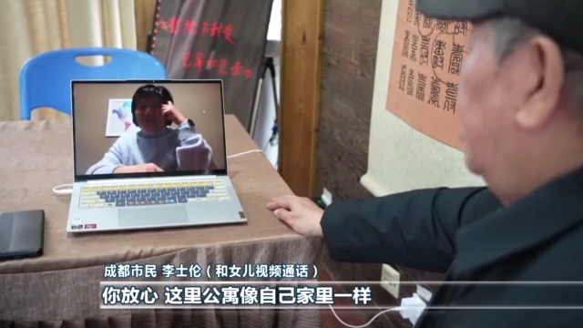 成都市民 李士倫(和女兒視頻通話):你放心,這里(公寓)像自己家里一樣,現(xiàn)在我吃得好,睡得好,精神也好。