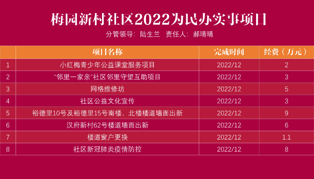 圖為南京市玄武區(qū)梅園新村街道梅園新村社區(qū)2022年為民辦實(shí)事項(xiàng)目清單。
