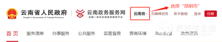 方式2:手機(jī)端進(jìn)入云南省政務(wù)服務(wù)網(wǎng),選擇“昆明市”,進(jìn)入昆明市政務(wù)服務(wù)站點(diǎn),注冊(cè)登錄賬號(hào)后,搜索所要辦理政務(wù)服務(wù)事項(xiàng)進(jìn)行在線辦理。