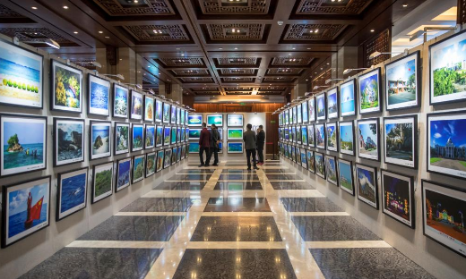 從建筑風格到圖書文創(chuàng),書店以江南底蘊、海派視野構建雅致生活方式,滿足讀者的多元文化訴求。書店特別設計了“琴棋書畫詩酒茶”七個小線索去演繹江南文化。比如,進門左手邊水幕墻設有“琴”擺臺,打造伯牙子期高山流水遇知音的場景,期望讀者在書店遇到知音。一樓臺階左側打造“詩”場景,選用王羲之《蘭亭集序》、鄭板橋字畫等復制品,傳遞出濃郁古典意境。“畫”的場景來自仇英《清明上河圖》,描繪明代蘇州城社會生活情景。位于二層的社區(qū)空間與咖啡吧則融合了“書”“茶”“酒”“棋”等場景。