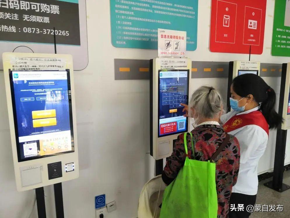 在蒙自汽車客運(yùn)站的信息無障礙服務(wù)臺,設(shè)置了兩臺無障礙信息服務(wù)設(shè)施,志愿者們會幫助老年旅客在自助購票機(jī)上購買車票,用實(shí)際行動(dòng)助力老年人跨越“數(shù)字鴻溝”,營造良好社會氛圍。