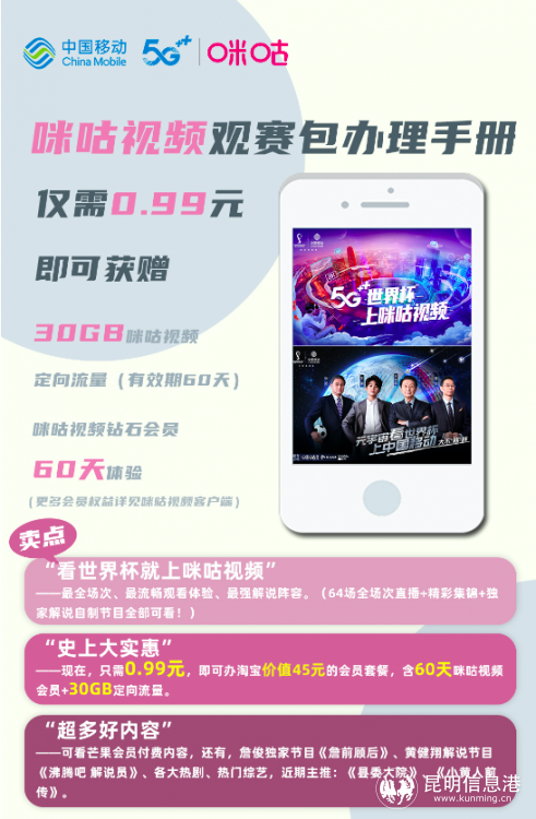 每逢體育盛會,移動都會推出豐富的權(quán)益活動助力觀賽,本次還創(chuàng)新推出“0.99元觀賽包”活動。移動用戶通過短信發(fā)送099到10086,或下載“咪咕視頻”App,只需0.99元即可辦淘寶價值45元的會員套餐,享受60天咪咕視頻會員+30BG定向流量,在這里不僅可以觀看最全場次、最流暢觀看體驗、最強解說陣容的世界杯賽事,同時還可看芒果會員付費內(nèi)容,各大熱劇、熱門綜藝超多好內(nèi)容盡在其中。