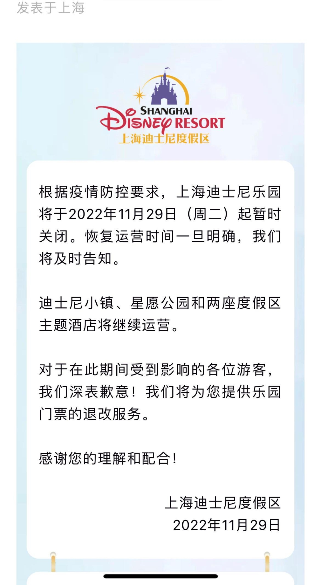 記者獲悉,上海迪士尼樂園將于2022年11月29日(周二)起暫時關(guān)閉。恢復(fù)運營時間一旦明確,將及時告知。上海迪士尼度假區(qū)將提供樂園門票的退改服務(wù)。
