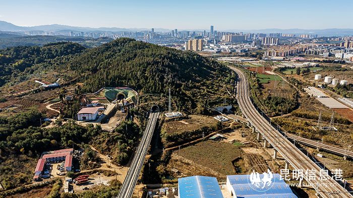 青龍山隧道位于云南省昆明市呈貢區(qū),全長629米,為單洞雙線隧道,是渝昆高鐵進入昆明市區(qū)的“咽喉”隧道,全隧為Ⅴ級圍巖,最大埋深僅84米,設(shè)計時速350公里每小時,隧道結(jié)構(gòu)與滬昆高鐵、南昆客專平行,直線距離滬昆高鐵60米左右。