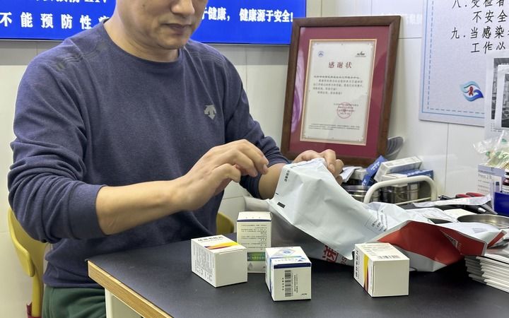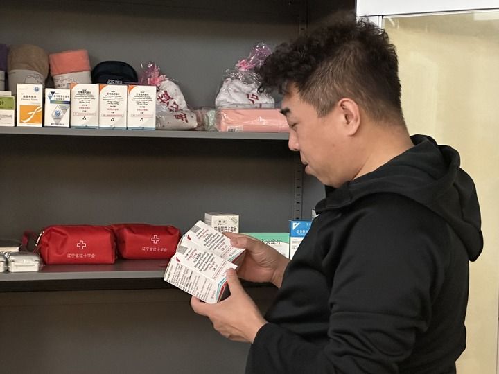沈陽益康社工負(fù)責(zé)人皓仁在整理艾滋病防治藥物,新華社記者 李昂 攝