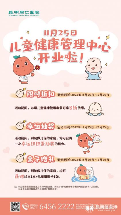 為了回饋家長(zhǎng)們的支持,昆明同仁醫(yī)院兒童健康管理中心也給大家準(zhǔn)備了誠(chéng)意滿滿的開業(yè)福利,家長(zhǎng)們不可錯(cuò)過(guò)哦~