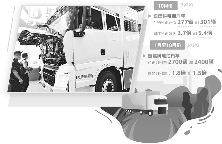 中國(guó)汽車工業(yè)協(xié)會(huì)數(shù)據(jù)顯示,10月份,氫燃料電池汽車產(chǎn)銷分別完成277輛和301輛,同比分別增長(zhǎng)3.7倍和5.4倍。1月至10月,氫燃料電池汽車產(chǎn)銷分別為2700輛和2400輛,同比分別增長(zhǎng)1.8倍和1.5倍。
