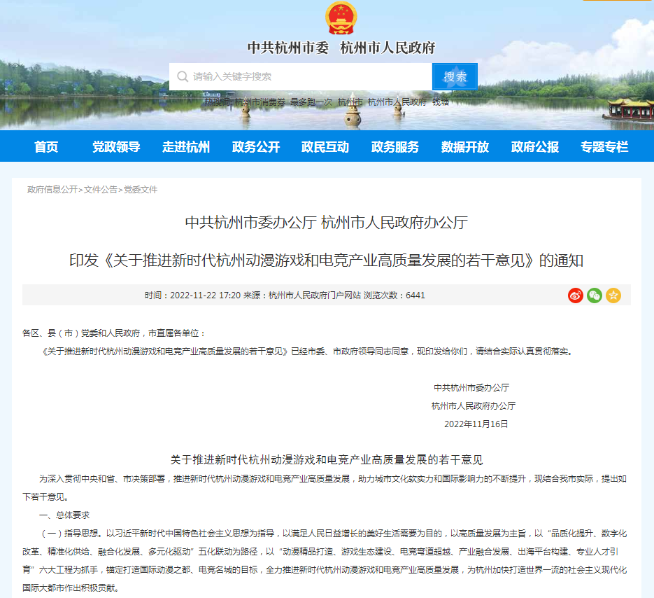 該《若干意見(jiàn)》由杭州市委辦公廳、市政府辦公廳聯(lián)合印發(fā),是自2005年以來(lái)杭州動(dòng)漫游戲產(chǎn)業(yè)發(fā)展的第六輪政策。其中,最大的特色是深入學(xué)習(xí)貫徹黨的二十大精神,把握國(guó)家文化數(shù)字化戰(zhàn)略深入實(shí)施的契機(jī),借助杭州2022年第十九屆亞運(yùn)會(huì)的東風(fēng),首次將動(dòng)漫游戲與電競(jìng)產(chǎn)業(yè)融為一體,著力推動(dòng)“動(dòng)漫+、游戲+、電競(jìng)+、元宇宙+”深度融合創(chuàng)新。該《若干意見(jiàn)》也是黨的二十大召開(kāi)以來(lái)全國(guó)城市中首個(gè)推動(dòng)動(dòng)漫游戲和電競(jìng)產(chǎn)業(yè)融合發(fā)展的政策。