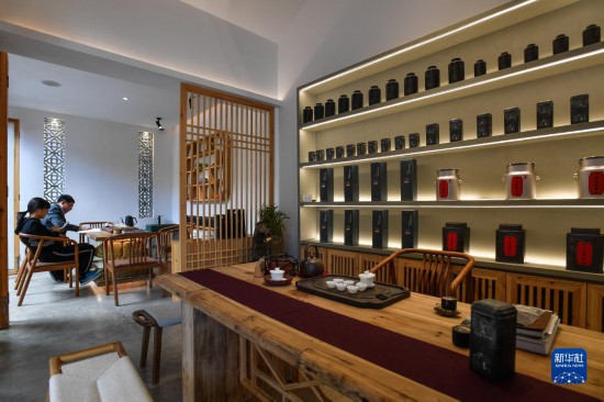 在潮州鳳凰單叢茶核心產(chǎn)區(qū)鳳凰鎮(zhèn),由當?shù)乩险蘅樃脑於傻拿袼逓榭腿藴蕚淞藳_泡工夫茶的休閑空間(2021年12月15日攝)。