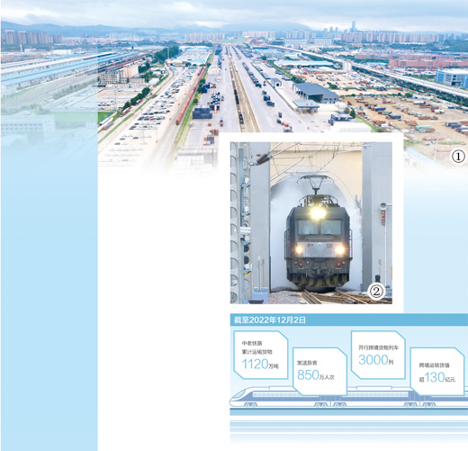 中老鐵路是第一條采用中國標準、中老合作建設運營,并與中國鐵路網直接連通的國際鐵路。截至2022年12月2日,中老鐵路累計運輸貨物1120萬噸,發(fā)送旅客850萬人次,開行跨境貨物列車3000列,跨境運輸貨值超130億元人民幣,為沿線地區(qū)發(fā)展按下“加速鍵”,跑出“加速度”。
