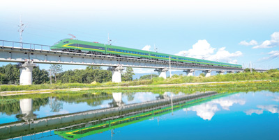 復興號動車組飛馳在中老鐵路橄欖壩特大橋上。