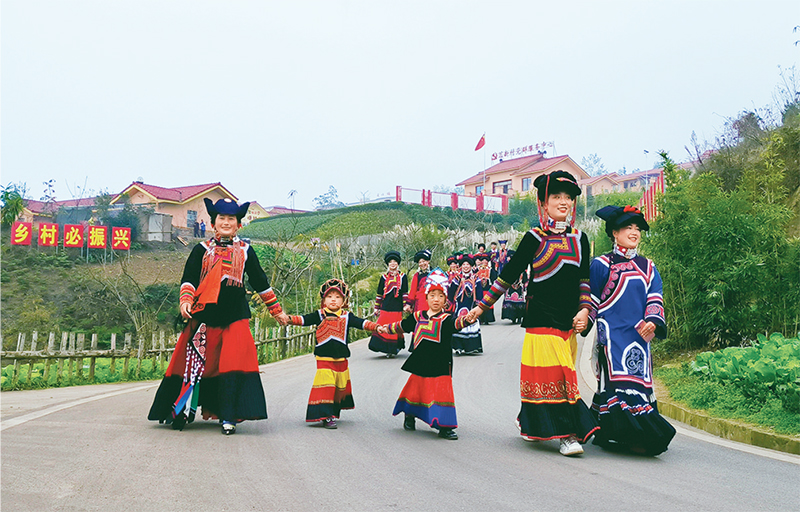 圖為2022年11月18日,茗新村村民身著節(jié)日盛裝,前往太陽廣場慶祝彝歷新年,暢想新征程新生活。 陳俊逸/攝