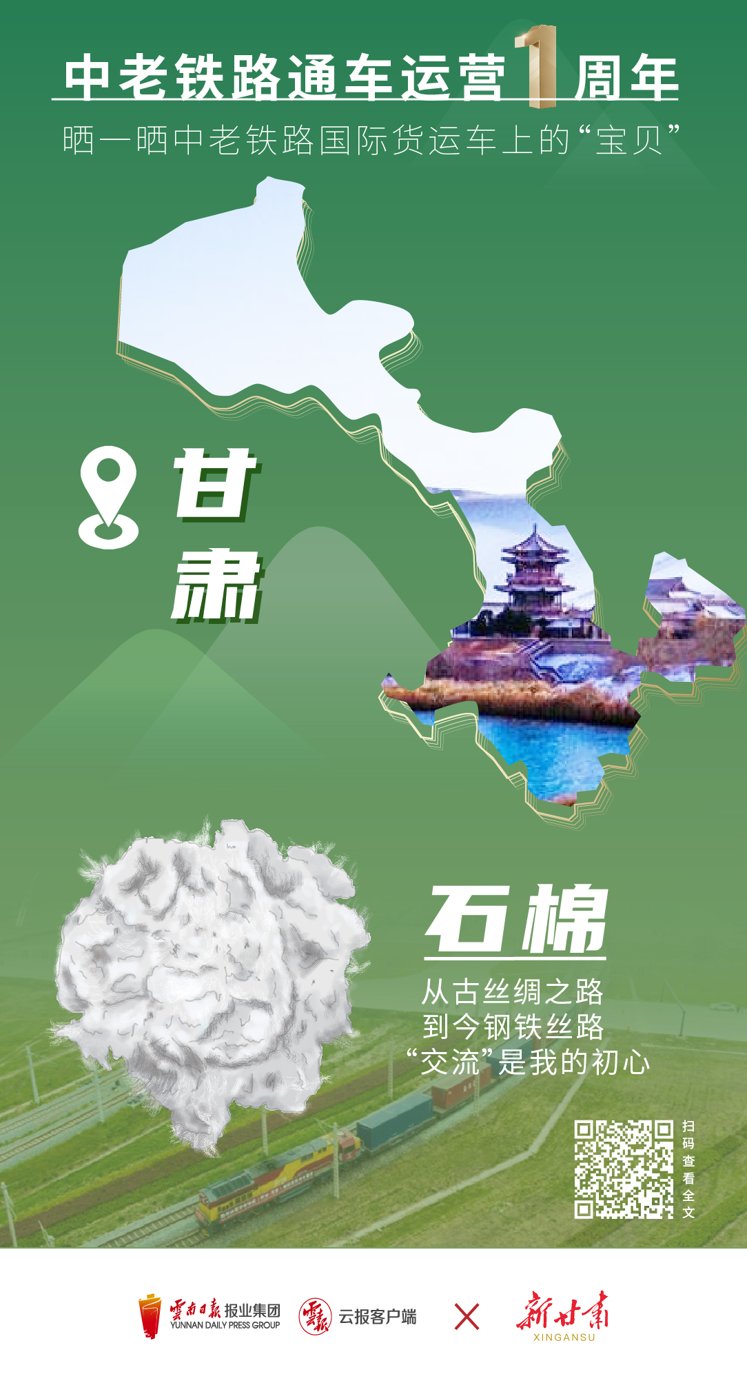 2022年4月21日,甘肅首趟中老鐵路國(guó)際貨運(yùn)列車在敦煌市鐵路西貨站綜合貨場(chǎng)等待發(fā)車,這是甘肅省首次通過中老國(guó)際鐵路向境外直接出口本地產(chǎn)品,也是國(guó)內(nèi)首發(fā)的石棉集裝箱國(guó)際鐵路聯(lián)運(yùn)列車,為南向通道發(fā)展進(jìn)出口貿(mào)易開辟了一條新的便捷運(yùn)輸通道。