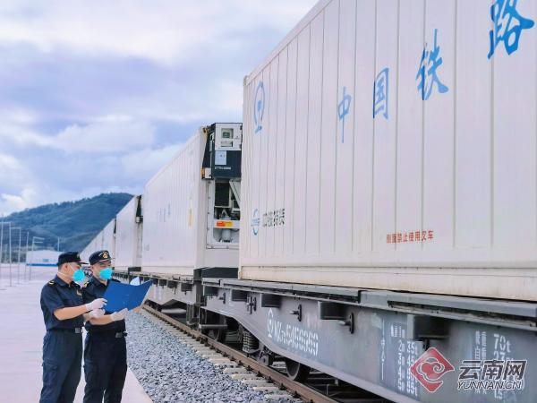 昆明海關(guān)對(duì)中老鐵路首批入境水果進(jìn)行查驗(yàn)