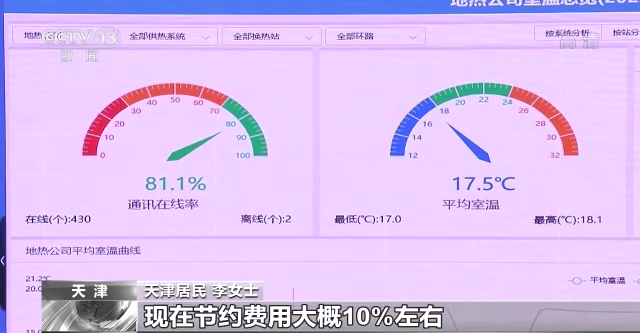 天津居民 李女士:現(xiàn)在地?zé)峁┡Ч脖容^好,而且也經(jīng)濟環(huán)保。和之前自己用天然氣供暖(相比),現(xiàn)在節(jié)約費用大概10%左右。