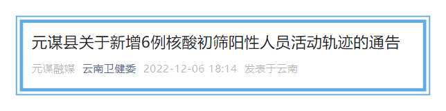 元謀縣關(guān)于新增6例核酸初篩陽(yáng)性人員活動(dòng)軌跡的通告