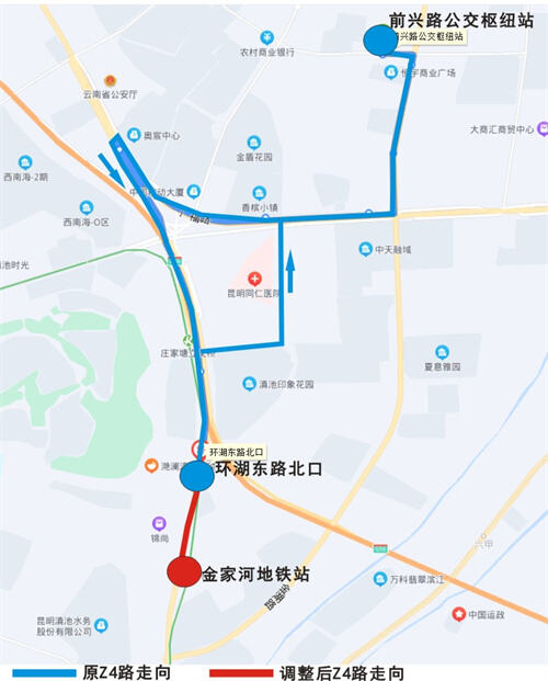 為加強(qiáng)地鐵5號(hào)線(xiàn)公交、地鐵換乘銜接,方便市民出行及換乘,昆明公交集團(tuán)將調(diào)整Z4路走向。