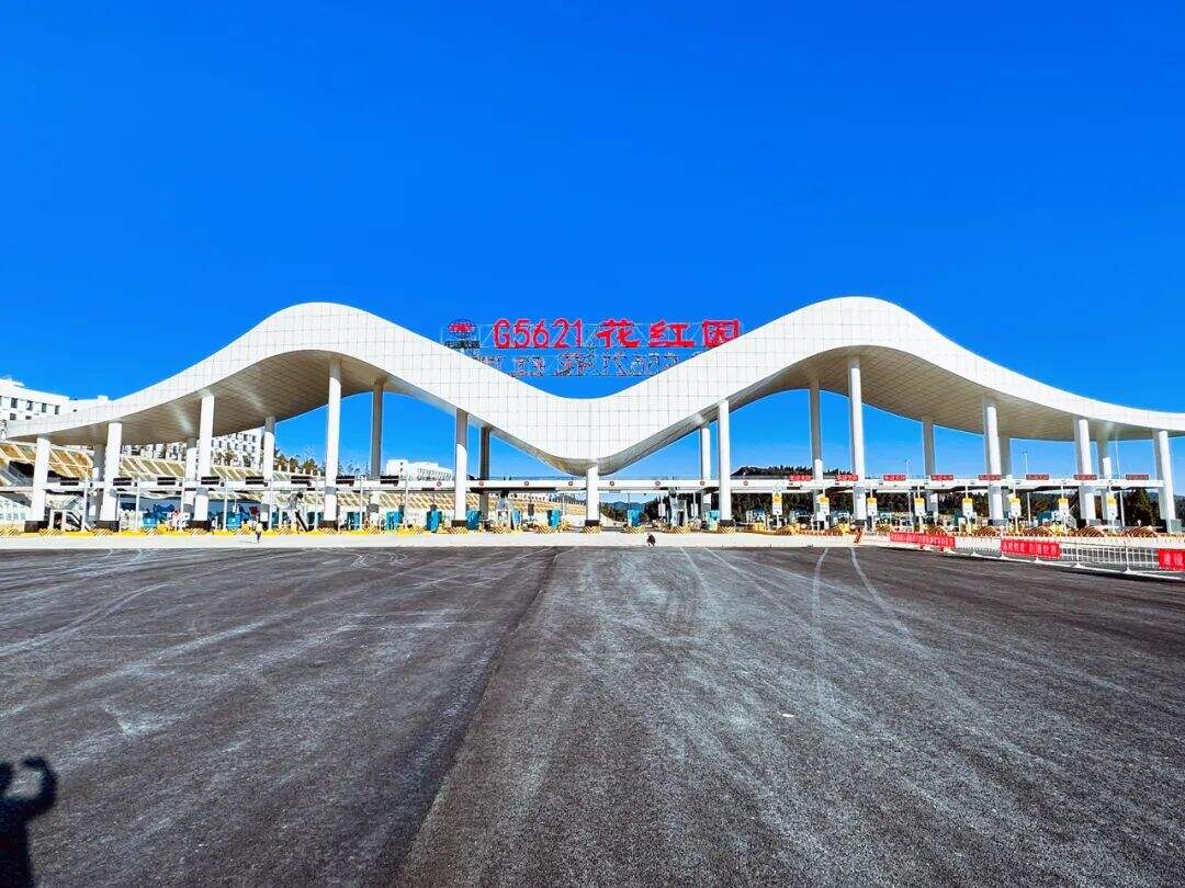 新昆楚高速沿途設(shè)置了花紅園、谷律、和平、祿豐、一平浪5個(gè)收費(fèi)站。其中,G5621花紅園收費(fèi)站是目前昆明市通往滇西方向第一大收費(fèi)站,共設(shè)置包括13個(gè)ETC車道在內(nèi)的28條收費(fèi)車道。該收費(fèi)站外觀設(shè)計(jì)形似昆明的好朋友——紅嘴鷗,飛翔的姿態(tài)也寓意著司乘可以像紅嘴鷗一樣在新昆楚高速公路上暢快飛馳旅行。