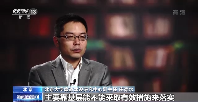北京大學廉政建設研究中心副主任 莊德水:我們中央政策能不能落地,主要靠基層能不能采取有效措施來落實,但在現(xiàn)實生活中,受形式主義、官僚主義的困擾,很多基層領(lǐng)導干部忙于開會、忙于應酬、忙于檢查。在這種情況下沒有把時間和精力,用在為民解困上,也不能用在辦實事上面來,在這種情況下,我們必須下大決心來解決形式主義的問題,為基層減負,讓基層干部真正從這些形式主義的束縛中、掙脫出來,把時間和精力用在謀發(fā)展,作部署上面來。
