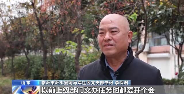 山東臨沂市沂水縣前馬荒社區(qū)黨支部書記 李保君:以前上級部門交辦任務時都愛開個會,一年到頭光是會議、檢查和應酬,就讓我們應付不過來?,F(xiàn)在上級會議和檢查都少多了,我們的工作效率和積極性更高了,群眾和我們更愿意面對面交流了。