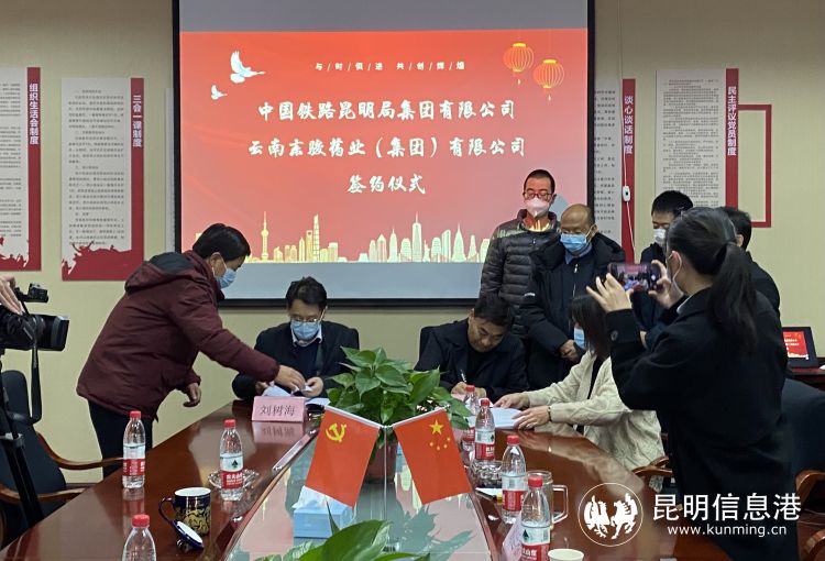 昆明信息港訊 記者昝娟娟 12月12日,中國鐵路昆明局集團(tuán)有限公司與云南東駿藥業(yè)(集團(tuán))有限公司職工健康關(guān)懷服務(wù)合作項(xiàng)目在云南東駿藥業(yè)(集團(tuán))有限公司總部正式簽約,開啟了鐵路職工健康關(guān)懷服務(wù)戰(zhàn)略合作新篇章。
