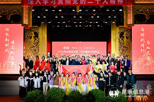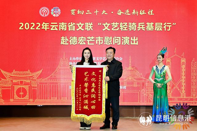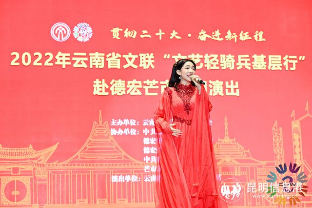 昆明信息港訊 記者甘凌菲 12月11日,云南省文聯(lián)“文藝輕騎兵基層行”系列活動(dòng)在“黎明之城”芒市舉辦?;顒?dòng)以“貫徹二十大?奮進(jìn)新征程”為主題,旨在深入學(xué)習(xí)貫徹黨的二十大精神和習(xí)近平新時(shí)代中國特色社會(huì)主義思想,傳遞黨和政府對基層干部群眾的關(guān)心問候,為邁步在新征程上的芒市人民加油鼓勁。