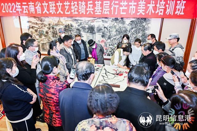 精彩演出之余,由云南省美術(shù)家協(xié)會(huì)理事許苑琳,云南藝術(shù)學(xué)院文華學(xué)院聲樂副教授李興常,中國書協(xié)會(huì)員、省書協(xié)原專職副主席孫源,云南省攝影家協(xié)會(huì)名譽(yù)副主席追藝組成的文藝志愿服務(wù)輔導(dǎo)專家團(tuán)隊(duì)圍繞音樂、美術(shù)、書法、攝影4個(gè)文藝門類,對芒市各文藝家協(xié)會(huì)會(huì)員、文藝教育者及愛好者進(jìn)行輔導(dǎo)培訓(xùn),幫助廣大基層文藝愛好者開闊眼界、提高創(chuàng)作能力,為芒市文化藝術(shù)蓬勃發(fā)展添磚加瓦。