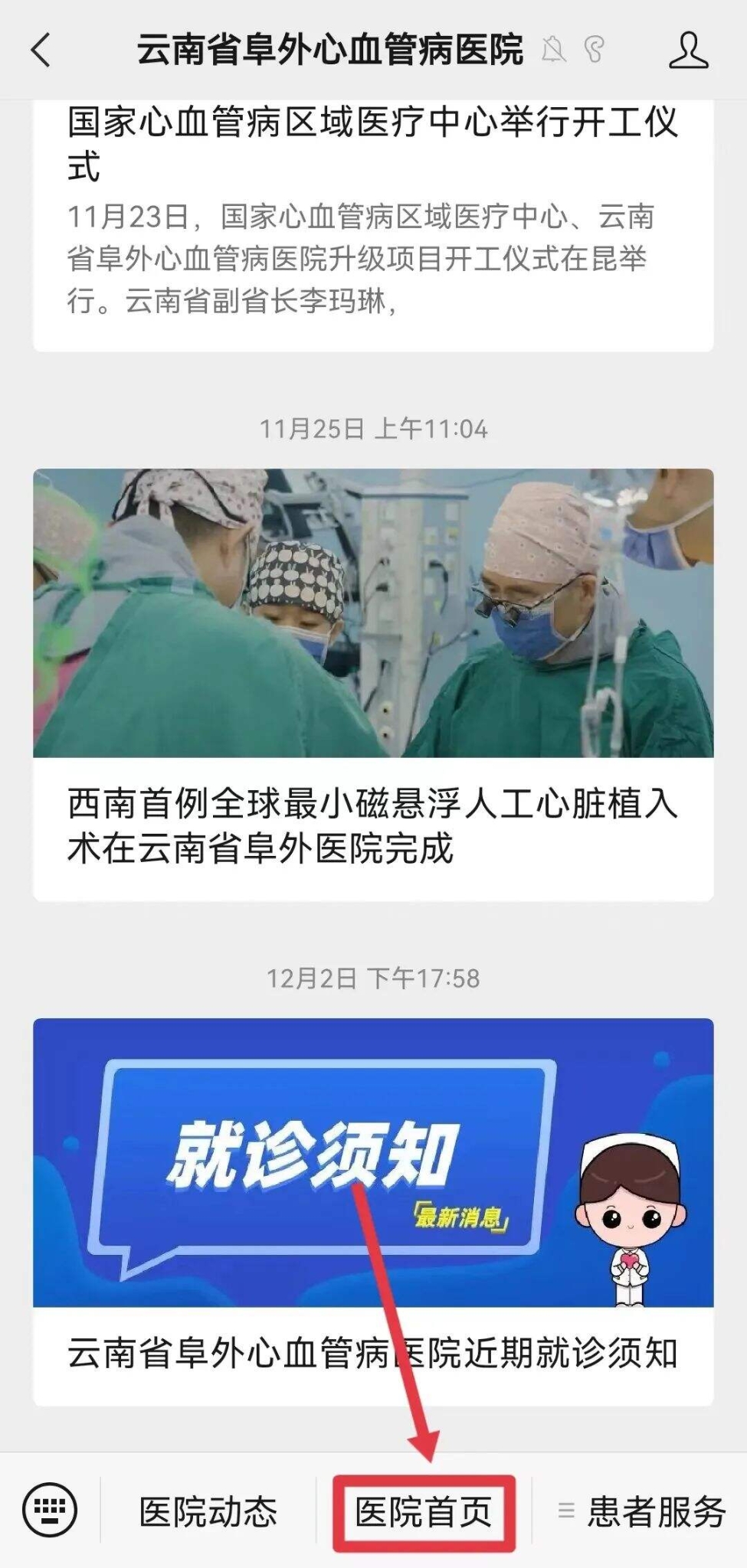 云南省阜外心血管病醫(yī)院互聯(lián)網(wǎng)醫(yī)院就診流程(微信公眾號操作版)
