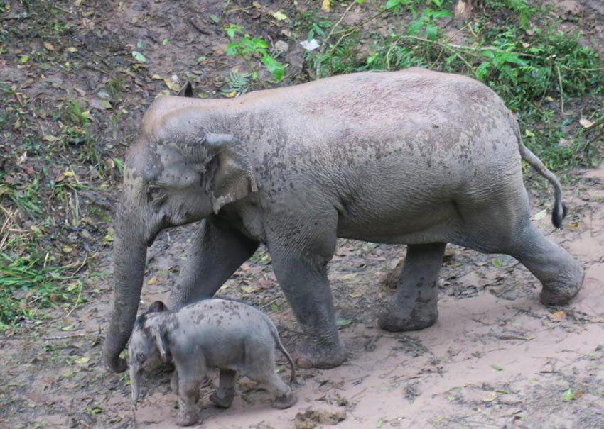 去年一頭象寶寶在旅途中出生,象媽媽拱著小象跨過溝坎的畫面萌化了許多網(wǎng)友的心?,F(xiàn)在,這頭小象已經(jīng)長大了,壯實(shí)了不少。