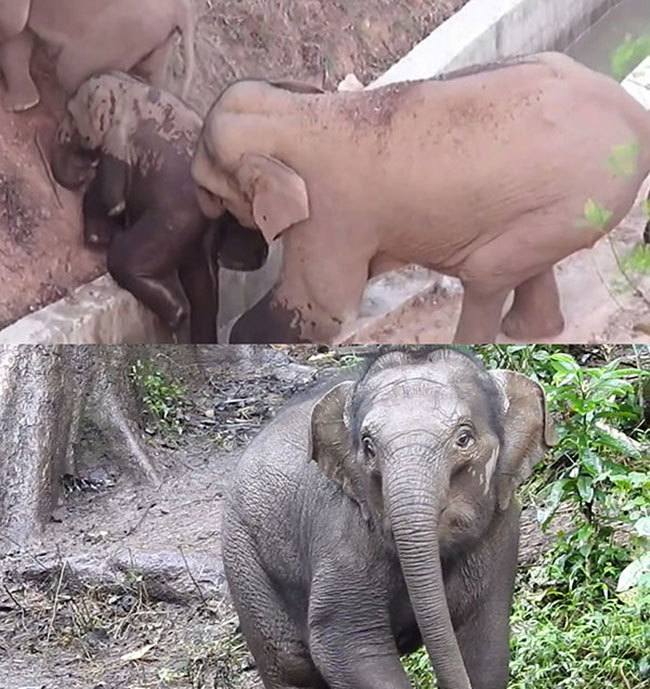 在旅途中出生的那只小象的前后對比。視頻截圖
