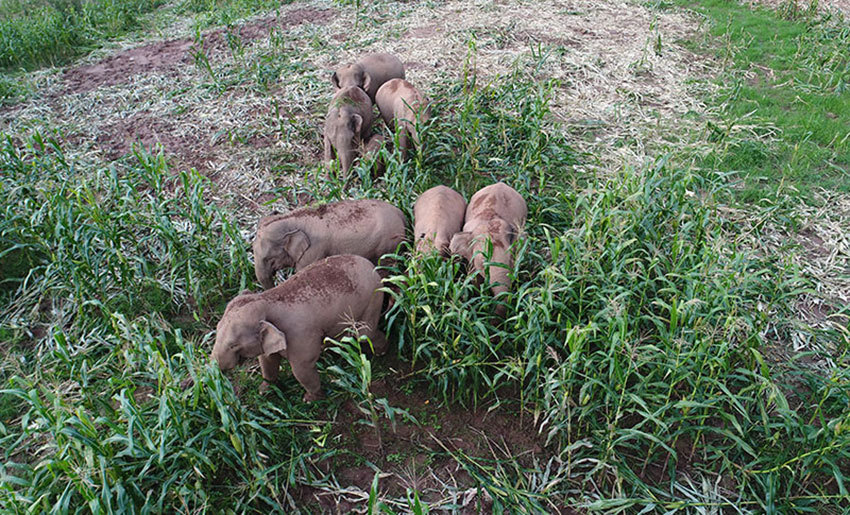 亞洲象監(jiān)測員說:“‘短鼻家族’發(fā)展壯大了。在這一年多的時間里,再添新丁,建了新群。”