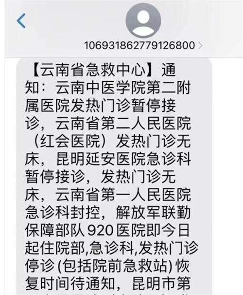 據(jù)云南省急救中心主任唐建中介紹,網(wǎng)傳所附短信圖片,實(shí)際上是12月3日早上8點(diǎn)18分急救中心的工作提醒信息。