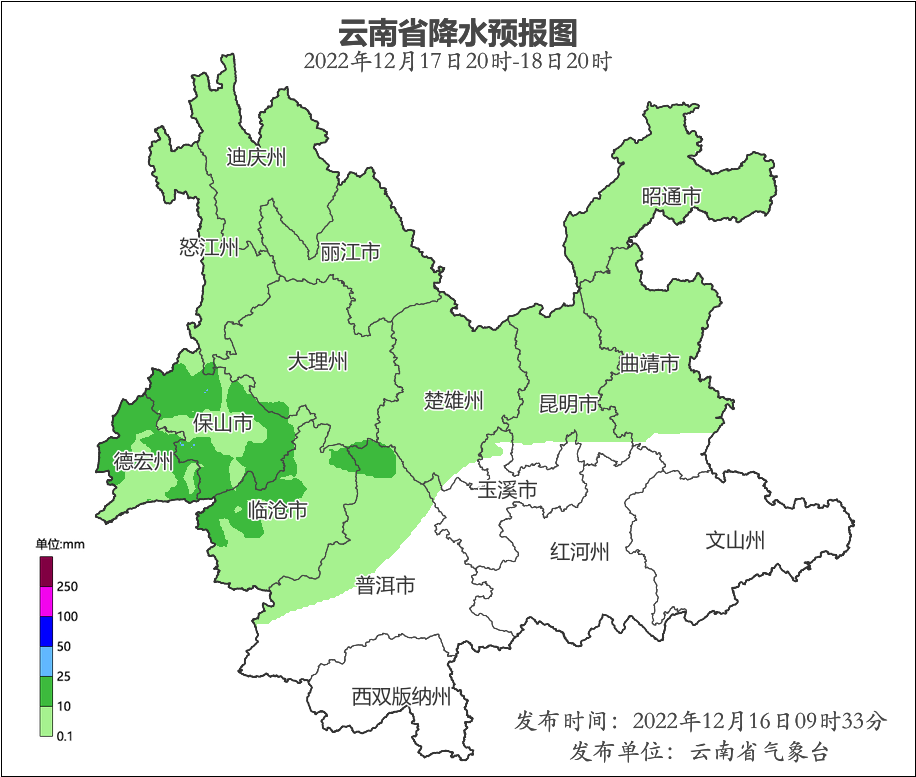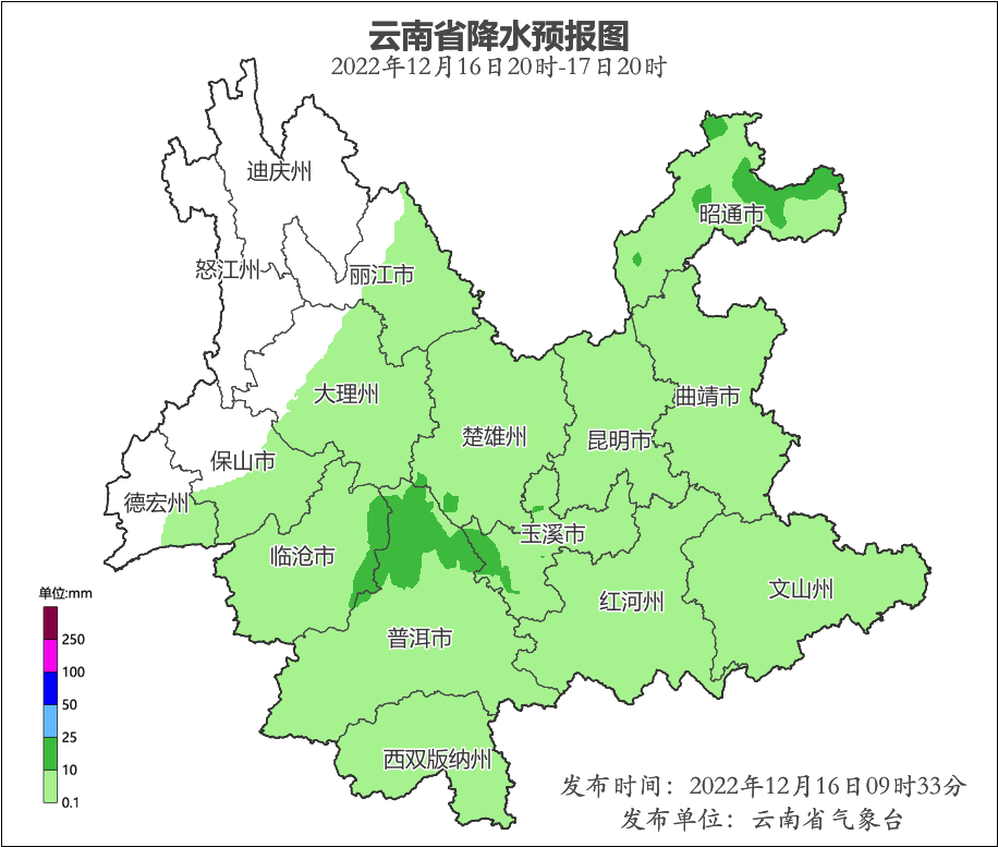 12月16日20時(shí)到12月17日20時(shí):昭通、曲靖北部陰有小到中雪,曲靖南部、昆明、楚雄東南部、玉溪、文山、紅河北部、麗江北部、迪慶北部小雨轉(zhuǎn)雨夾雪,高海拔地區(qū)有中到大雪;紅河南部、楚雄北部、普洱、西雙版納、臨滄、保山南部、德宏南部、麗江南部、大理陰有小雨局部中雨,其它地區(qū)多云局部有小雨。