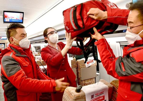 “之前我就聽說快遞也‘坐’高鐵,很快很方便,但不知道快遞是怎么‘坐’的?”快遞員張李慶咨詢乘務(wù)員。