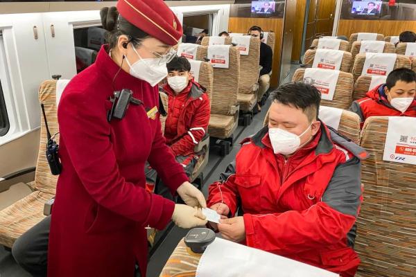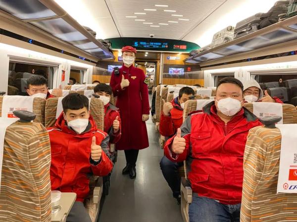 與此同時,7名來自哈爾濱的快遞員也登上了開往北京的g904次列車。
