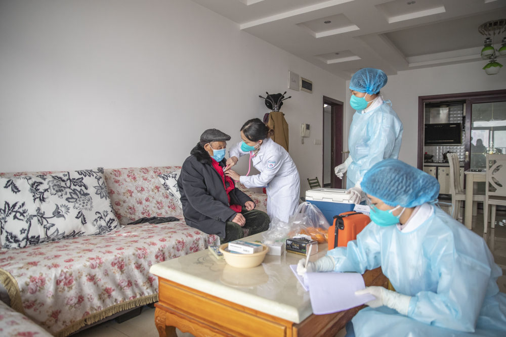 12月16日,在重慶市永川區(qū)中山路街道紅河路社區(qū)居民家中,流動接種小分隊為接種疫苗的老年人做接種前的問診和身體檢測。新華社記者 黃偉 攝